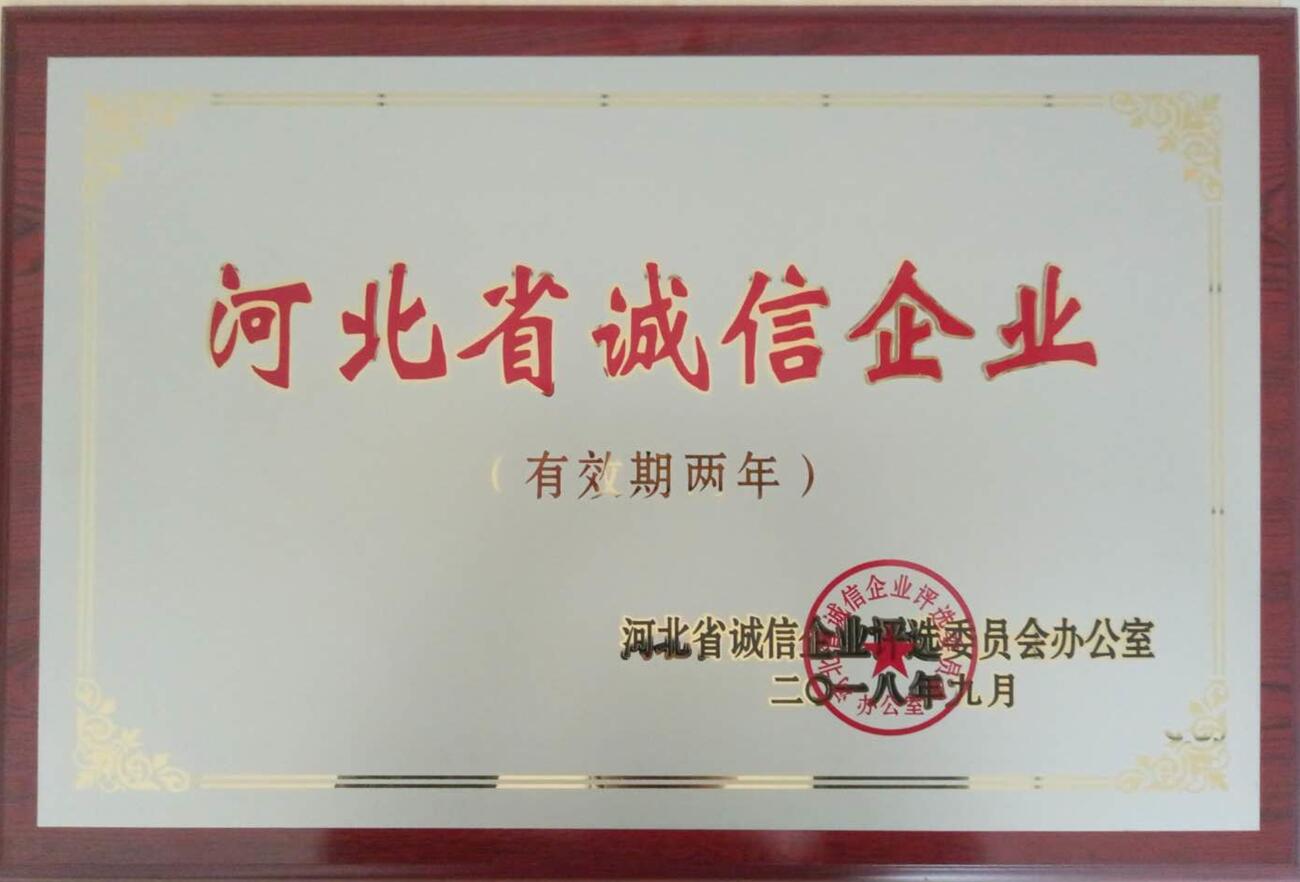 我司憑借良好的誠信建設和社會信譽,以誠信提升業務水平,進行誠信經營管理,以質量求生存,積極加強誠信管理。榮獲“河北省誠信企業”榮譽稱號,總經理葛廣躍先生榮獲“河北省誠信企業建設優秀工作者”稱號。